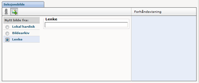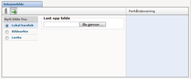 Dersom du har laget en bildemappe på toppnivå i løsningen din vil du også ha mulighet til å hente en bilde fra bildearkivet i systemet. Kryss av for valget “Bildearkiv”.